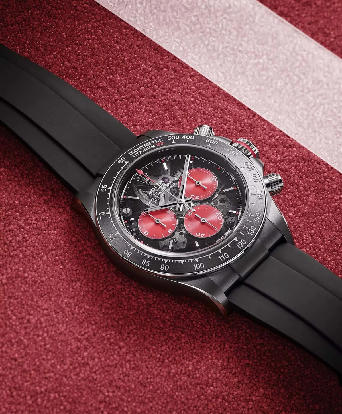The first impression of these watches is not only the famous orange-pink tint on the subdials but also the innovative technical solutions. For the first time, AdG created the case and bezel from titanium - a lightweight material, ideal for tennis watches. As Agassi said: "Every detail matters on the court. I've always dreamed of a watch that wouldn't distract me, that would move with me." Titanium received an ultra-light Tytalit treatment for increased scratch resistance.
